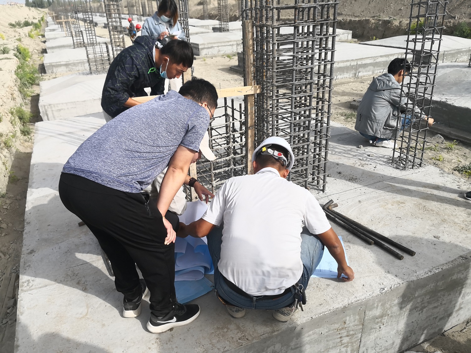 来源: 发布日期:2020-09-239月9日至11日,我公司第二工程院张伯臣、宗林威、陈亮亮三位同志赴新疆阿克苏地区沙雅县新疆利华纺织有限公司30万锭棉纺建设项目进行技术服务。在此期间,我技术人员对施工中出现的各种技术问题给出合理解决方案,对施工、监理和建设单位各方提出的问题逐一进行答复并进行图纸技术交底。在项目工地,我们和各相关单位对各建筑基础开挖情况进行现场勘验,并对施工质量进行了认真检查,如实填写检查记录。